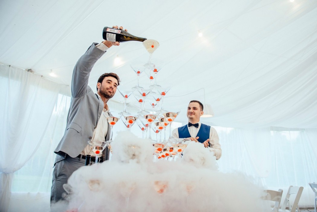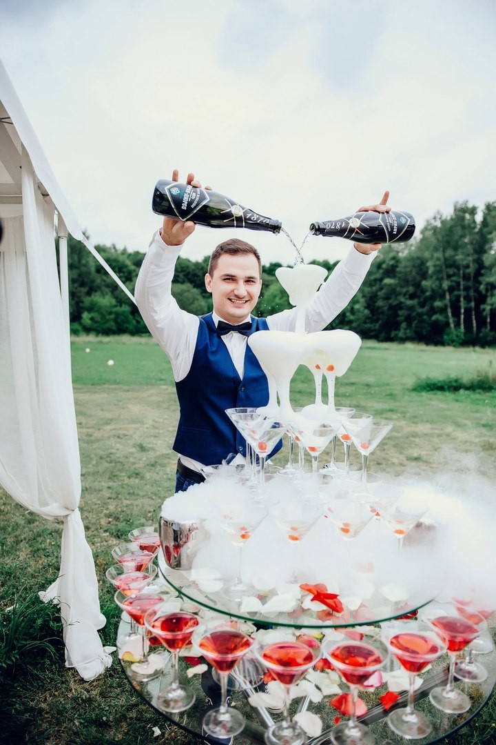 Пирамида шампанского, выездной коктейль бар, шоколадный фонтан, бармен шоу